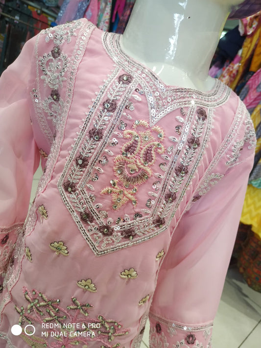 girls beautiful party frock long , baby pink, ( prbx 62)
