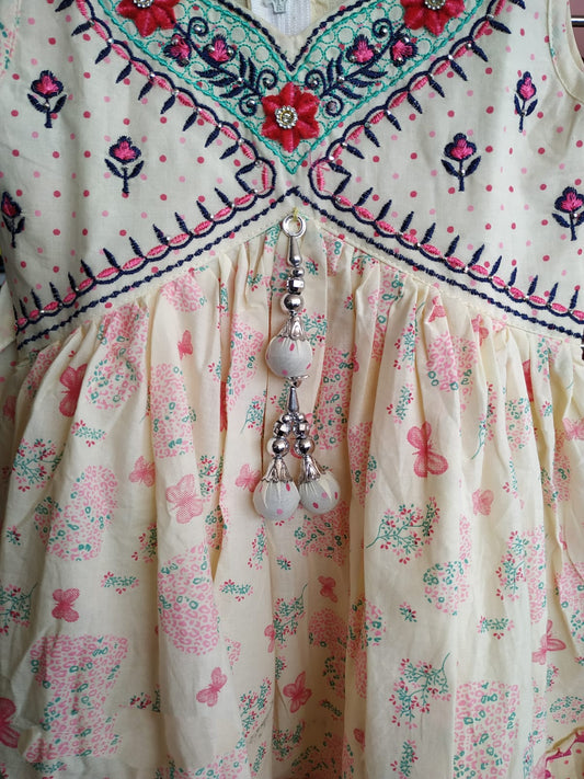 girls beautiful western classy frock , pink/green ( prbx 50)