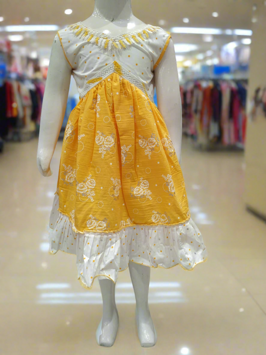 months baby girl beautiful western classy frock, white with flower print ( prbx 48)