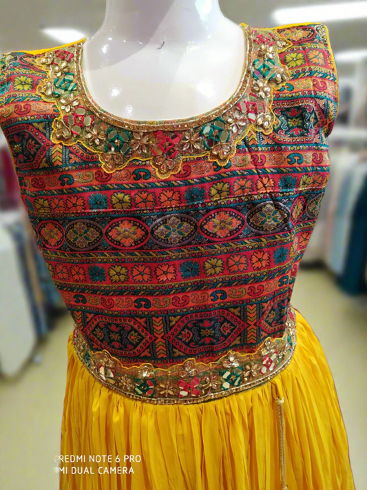 girls western yellow top and plazzo set , crush pattern ( Z 7)