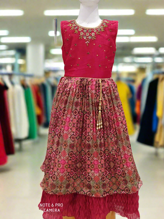 girls beautiful frock/ gown, flayered frock red/ green ( e 41)