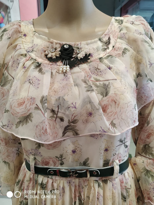 girls festive wear , beautiful frock/ gown, yellow with dupatta ( e 54)