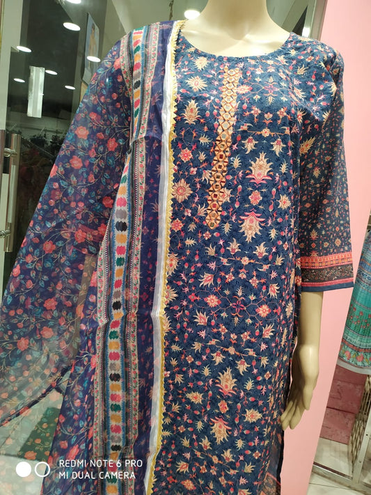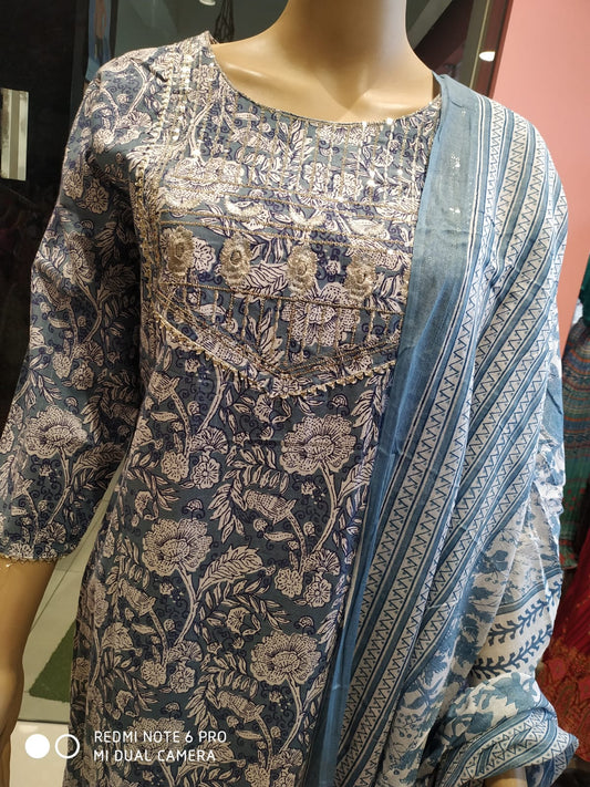Women's kurti set with pant and dupatta, blue ( Lfst 49)