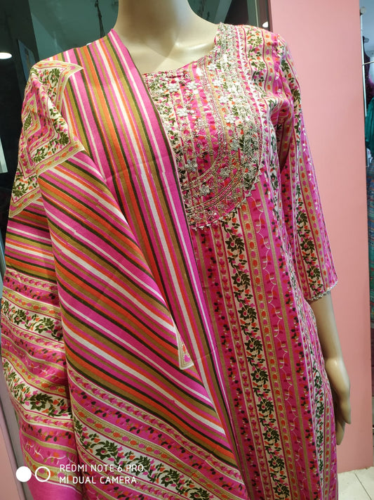 Women's kurti set with pant and dupatta, pink( Lfst 39)
