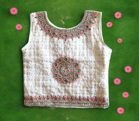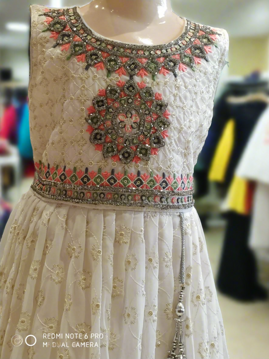 girls traditional / festive wear frock with work , colour white ( e 11 )