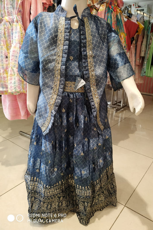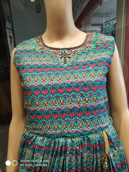 girls beautiful ethnic gown with jacket , green/ blue ( Z 11)