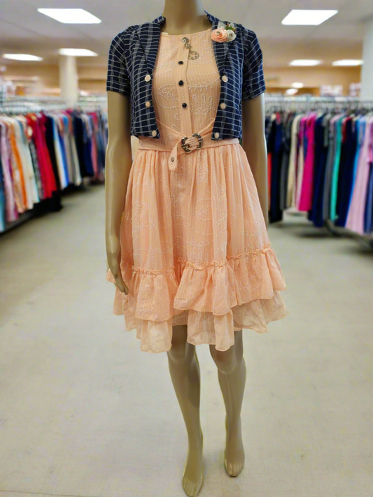 girls 4 piece western dress with legging and coat, peach& blue( wtbx 11)