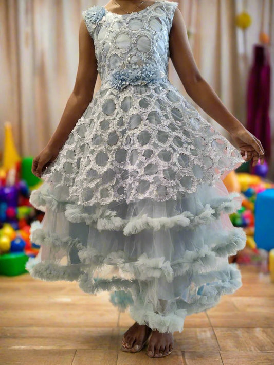 girls party wear , beautiful frock/ gown, blue &pink ( e 57)