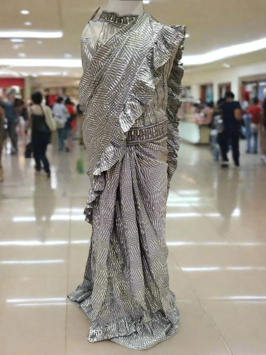 Chanderi ethnic croptop 3 piece set, green and white ( R 3)
