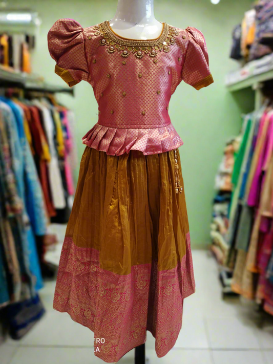 girls traditional / festive wear pattu frock, golden ( e 16)
