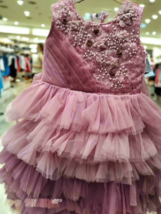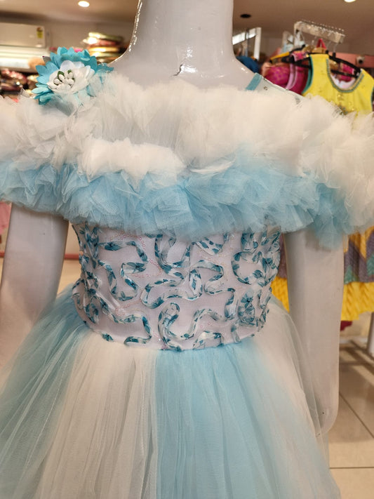 girls festive wear , beautiful frock/ gown, sky blue & pink ( e 60)