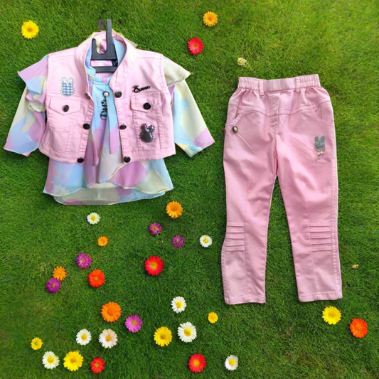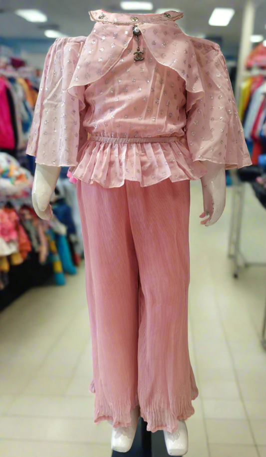 girls western stylish crush pattern top plazzo set, colour onion pink ( Z 14)