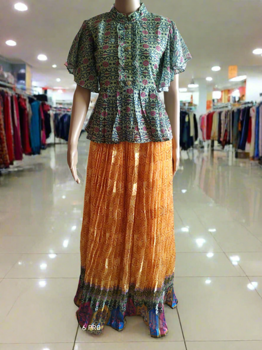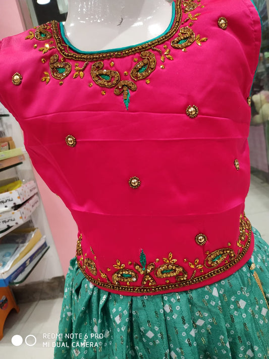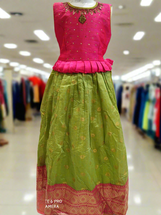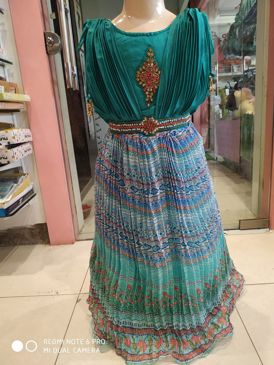 festive wear , beautiful frock/ gown, pink & green ( e 74)