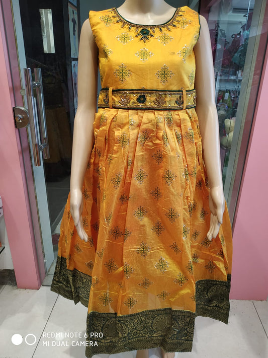 girls festive wear , beautiful frock/ gown, yellow with dupatta ( e 54)