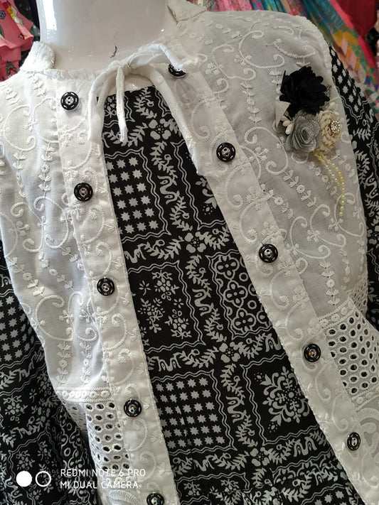 girls western stylish 3 piece black and white dress ( wtbx 12)