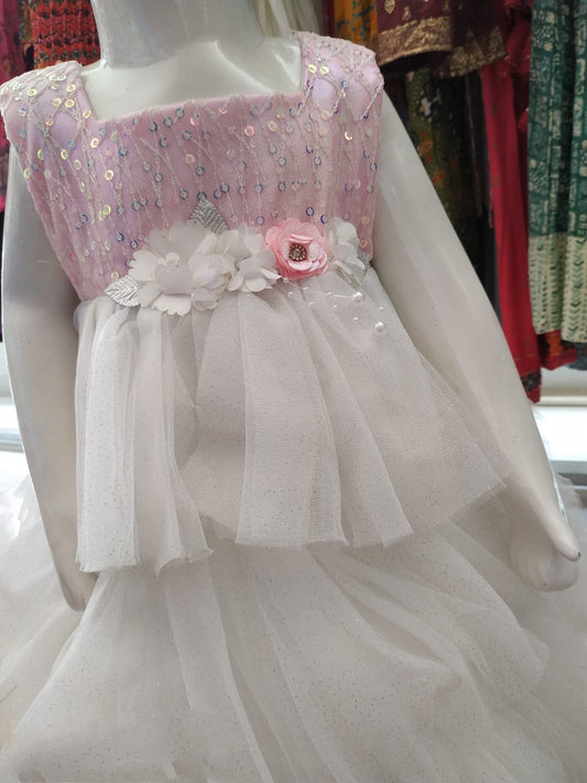 girls western classy frock beautiful white,blue and pink( prbx 22)