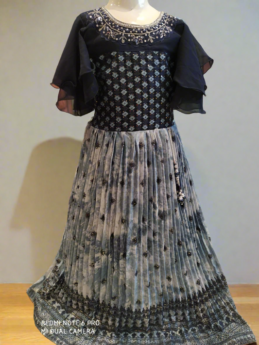 girls beautiful western classy dress , white and blue crush ( prbx 38)