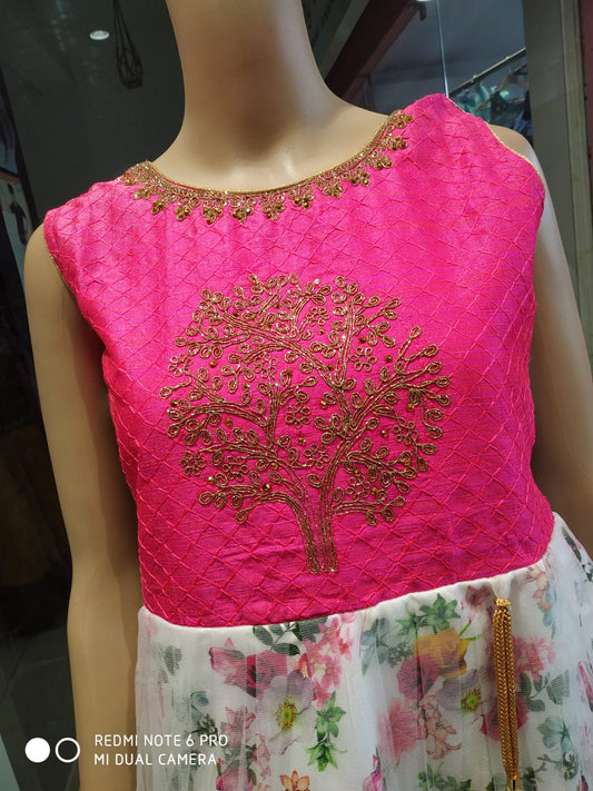 girls beautiful western classy frock , pink/green ( prbx 50)