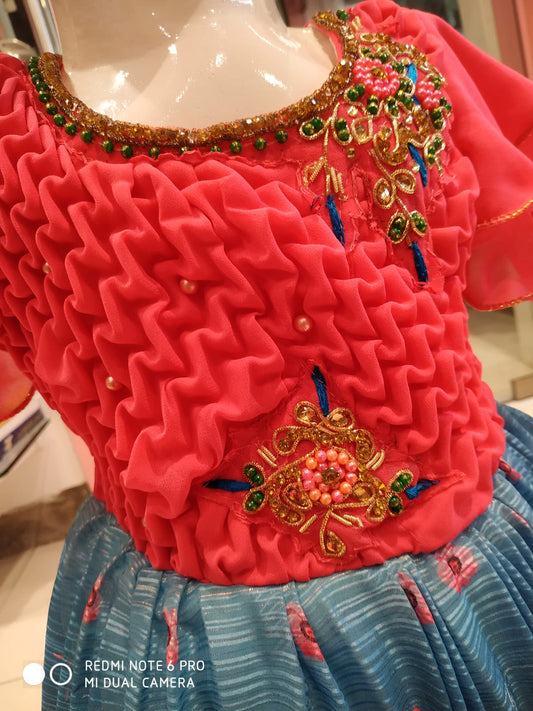 baby girl beautiful frock/ gown, pink & blue ( e 46)