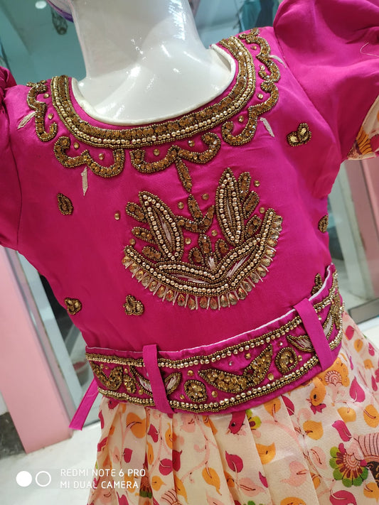baby girl festive wear , beautiful frock/ gown, kalamkari print ( e 42)