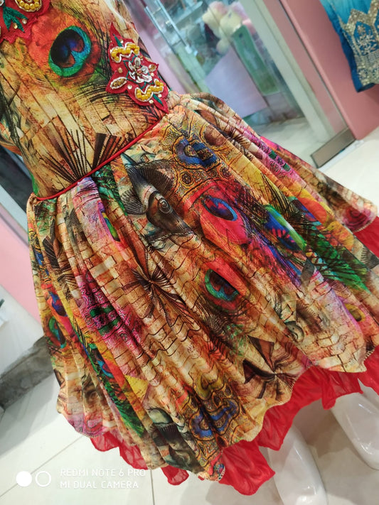festive wear , beautiful frock/ gown, peacock feather print ( e 83)
