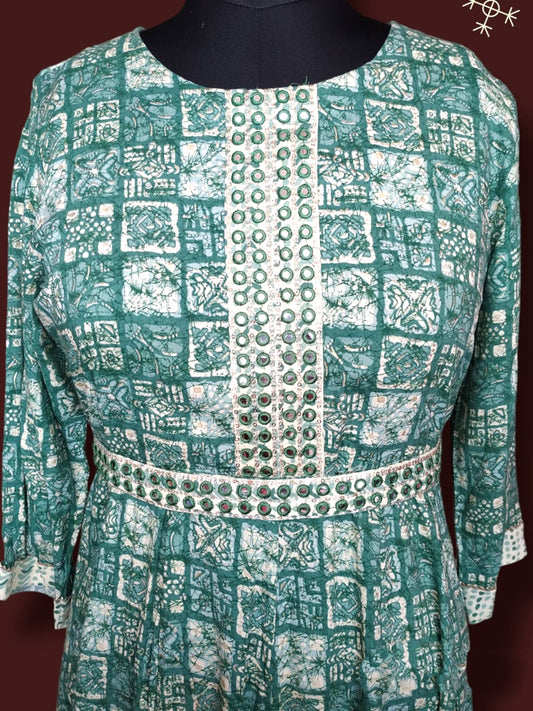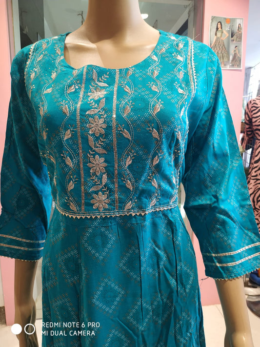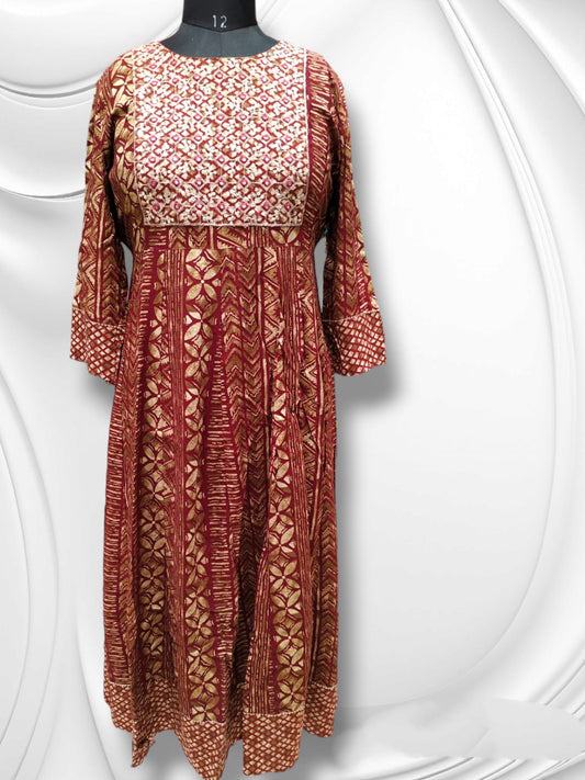 Flayered Umbrella gown, cotton bandhani print ( Lst 61)