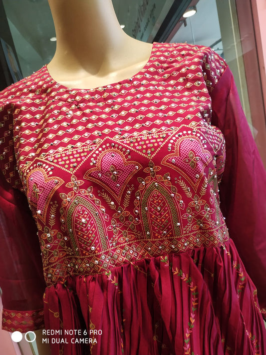 Partywear flayered Umbrella top ,red ( Lst 47)