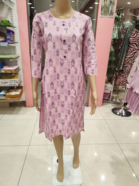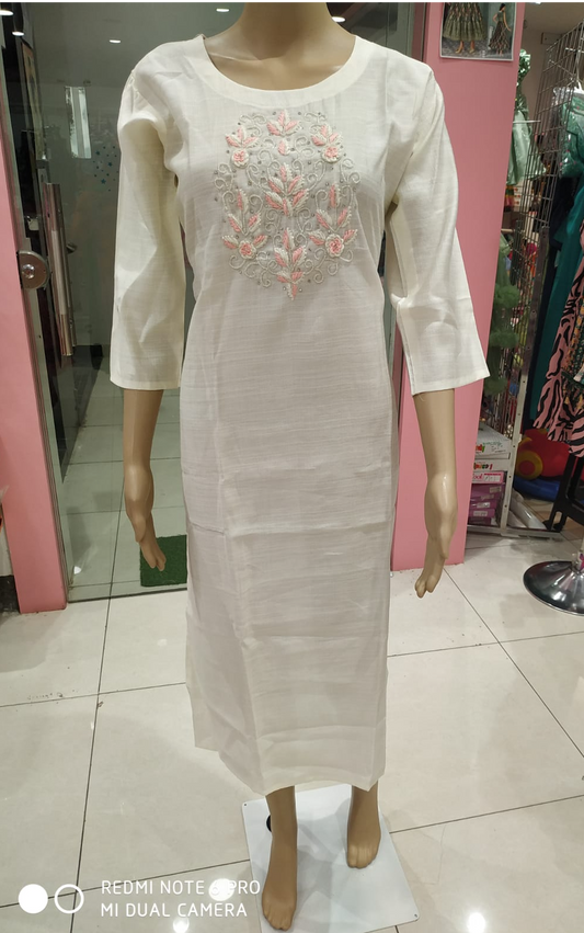 straight cut kurti ,partywear with work pink/ white( Lst 54)