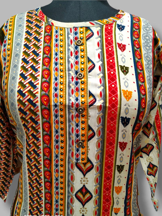 straight cut kurti offwhite with abstract design, plus size( Lst 31)
