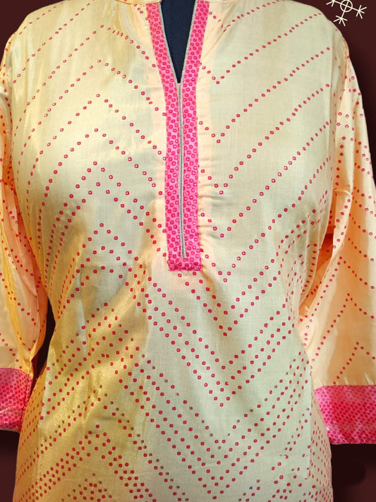 straight cut kurti pink/ yellow ( Lst 12)