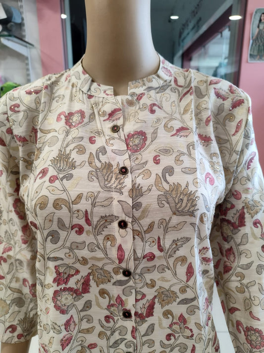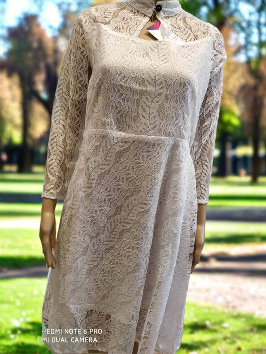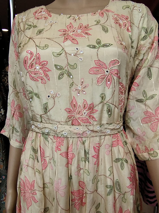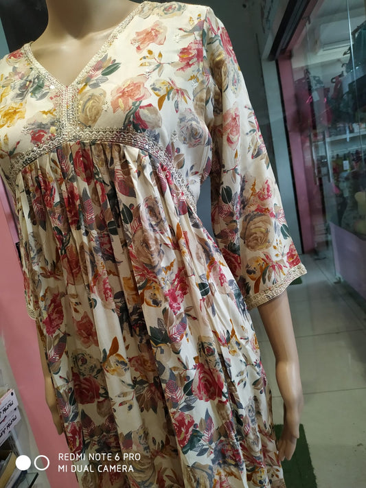 Flayered Umbrella partywear short dress , offwhite with thread work( Lst 4)