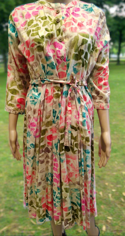 Flayered Umbrella gown, peach/mehandi/mustard /grey ( Lst 10)