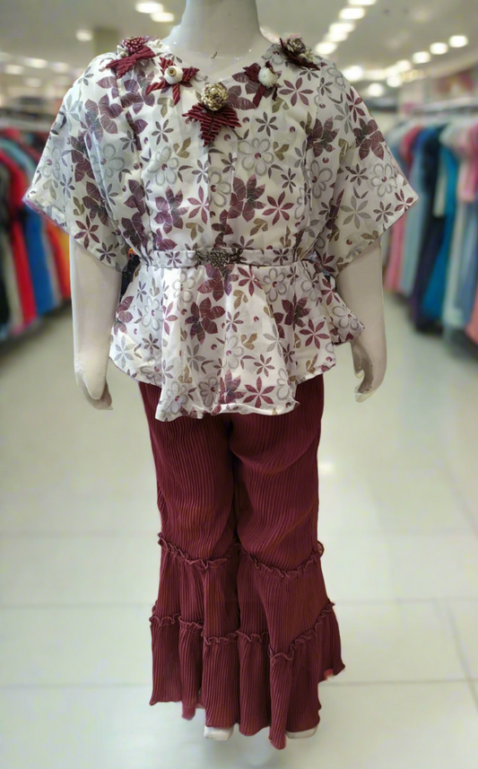 girls stylish western dress crush pattern with legging , wine / onion colour ( Z 20)